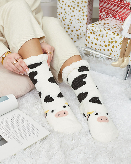 - Krásné dámské silné ponožky s potiskem. Uvnitř zateplené bílou hřejivou ovčí kožešinou. Ponožky jsou skvělé na chladnější večery!