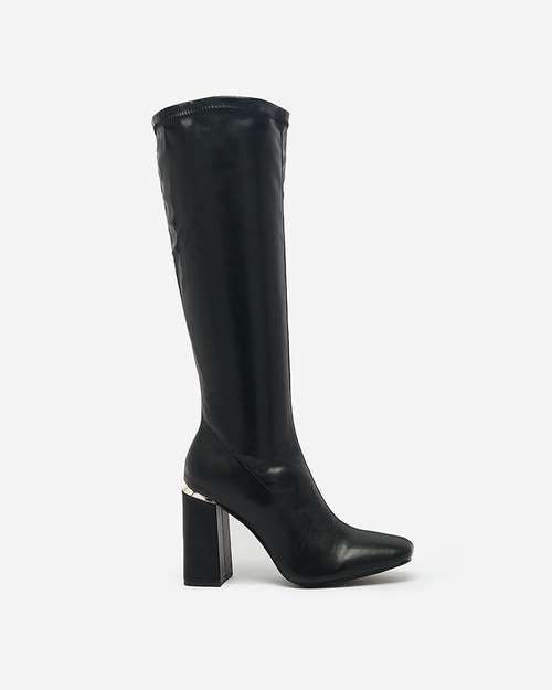 - Klasické dámské kozačky na podpatku, vyrobené z ekologické kůže, zapínání na zip. Uvnitř je látková stélka. Model s hranatým nosem. Pohodlné a elegantní!