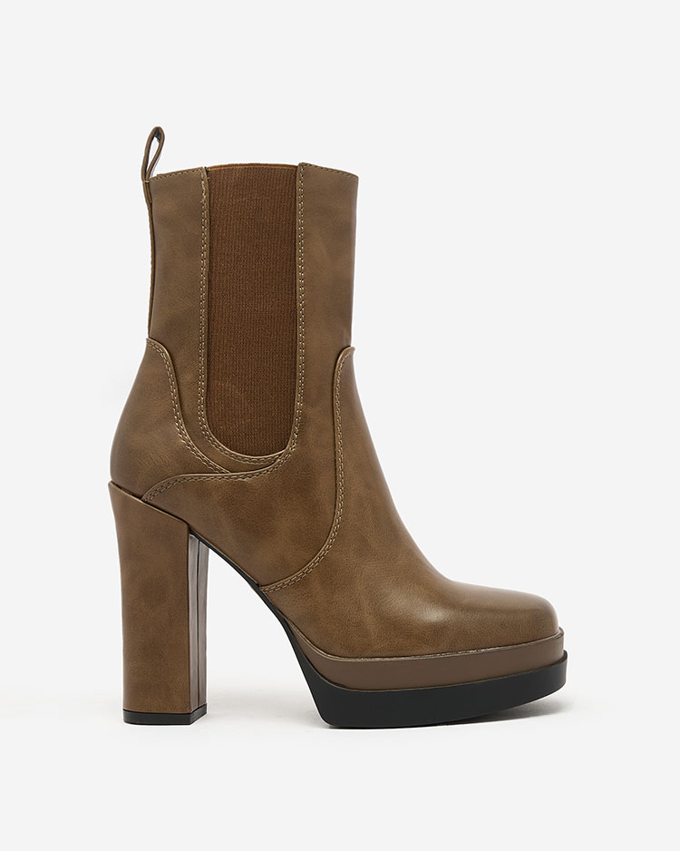 - Kozačky na hranatém podpatku s vysokým jehlovým podpatkem a platformou - styl a pohodlí v jednom. Elastická vsadka na boku a zapínání na zip pro snadné obouvání. Celé vyrobené z ekologické kůže. Tento model dodá CI sebevědomí!