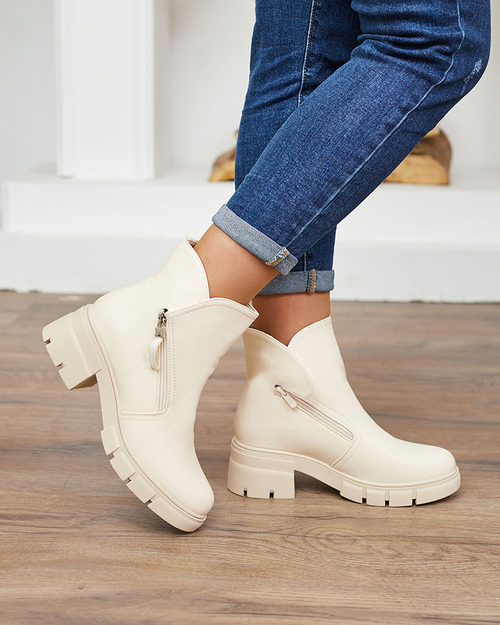Royalfashion Klasické dámské kozačky v krémové barvě Derica