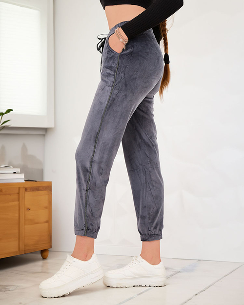 Royalfashion Šedé velurové dámské tepláky se zirkony