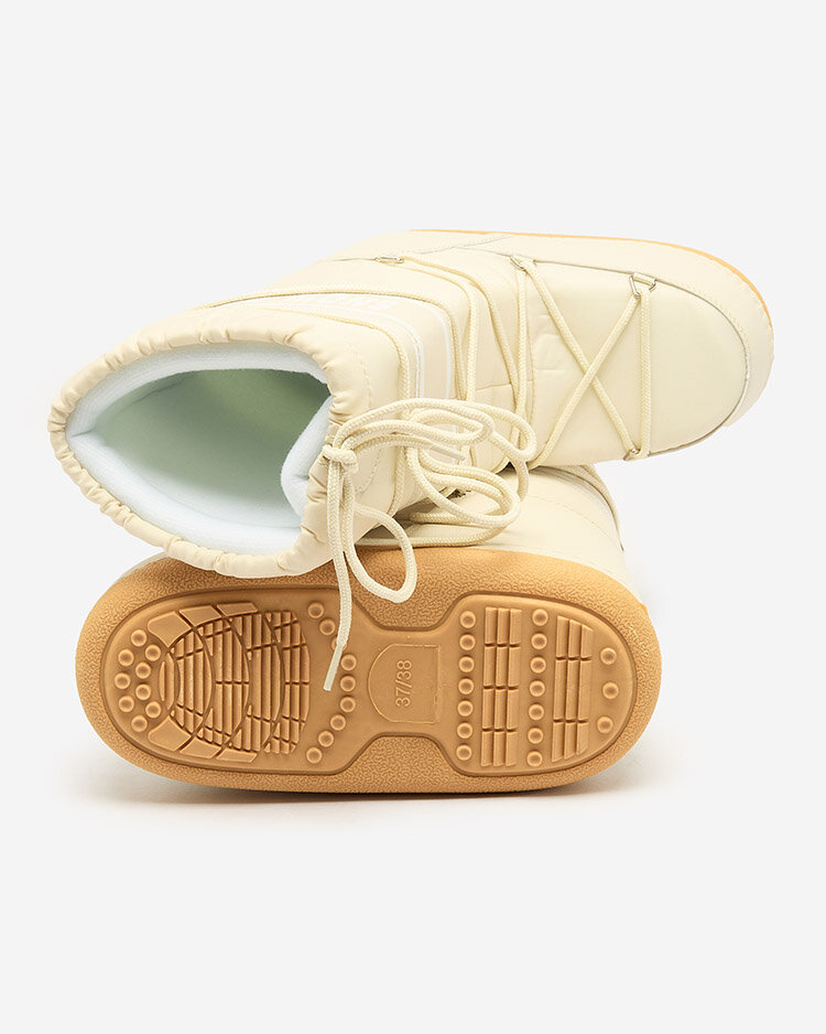 - Dámské boty a'la snow boots. Vyrobené z látky zateplené pěnou a s vložkami z ekokůže. Model se šněrováním, na horní části svršku má šněrování. Ideální volba pro zimní styling!