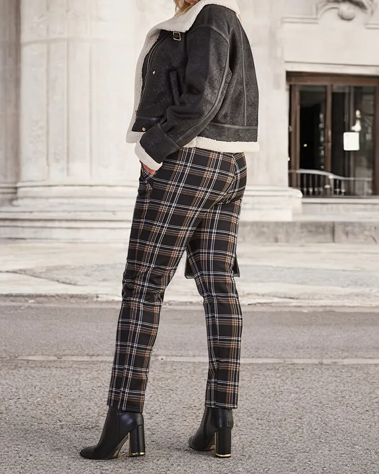 - Dámské tegínové kalhoty, vyrobené ze strečového materiálu. Model má široký elastický pas a 2 nakládané kapsy. Výrobek je zateplený hustým kožíškem a zdobený kostkovaným vzorem. Hit letošní sezony!
