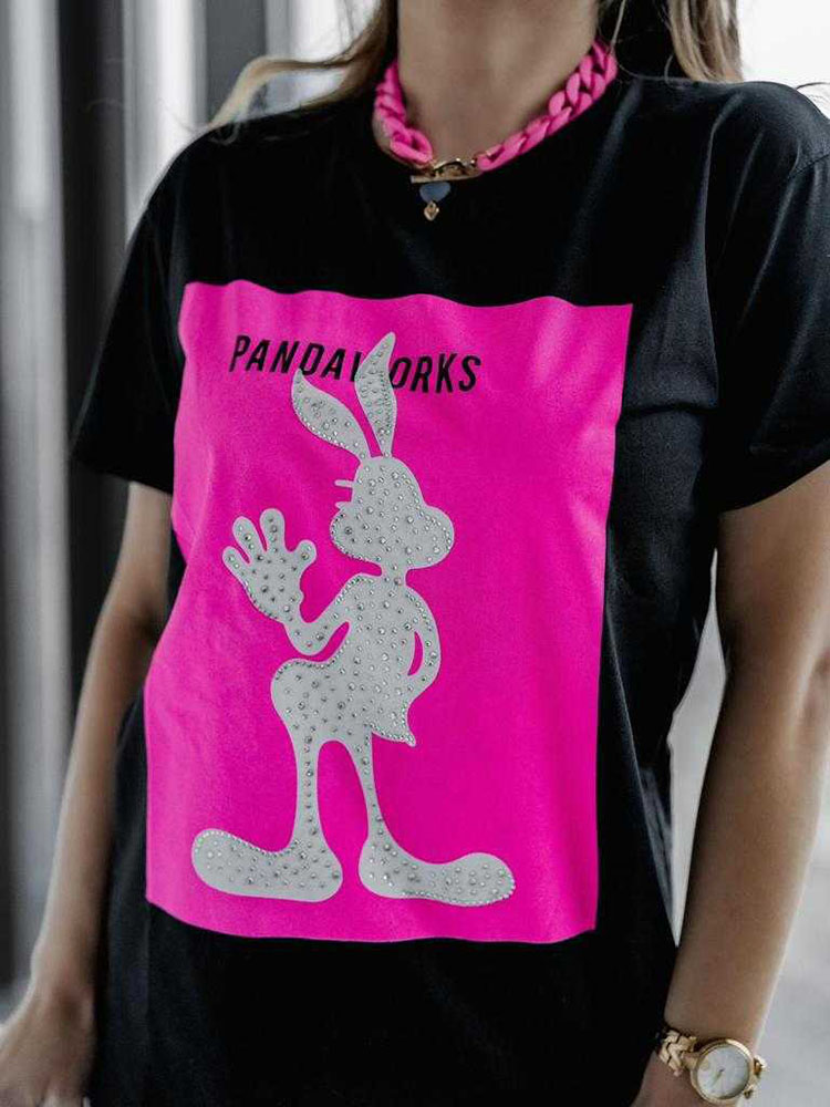 - Ležérní dámské tričko s potiskem a krátkým rukávem. Vyrobeno z bavlněné tkaniny. Ideální základ pro mnoho každodenních looků! UPOZORNĚNÍ: Přesnost měření (+/-) 1 cm. Rozměry měřeny naplocho.