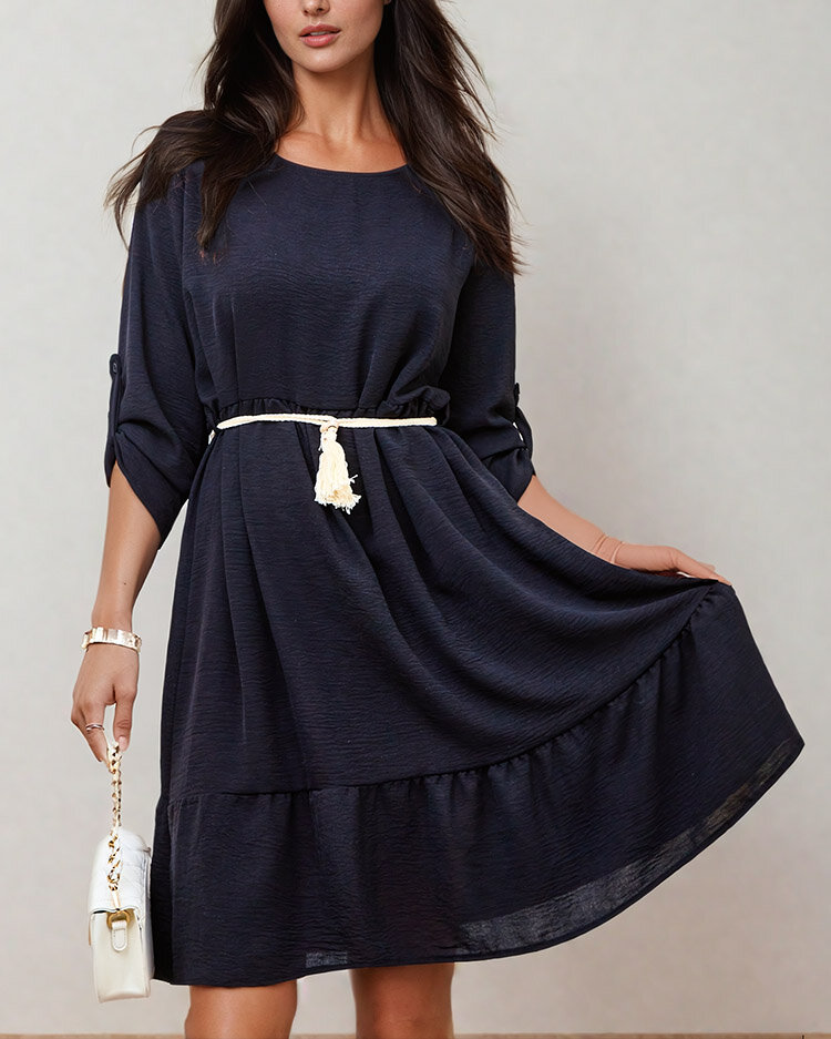 - Ležérní dámské šaty ke kolenům s dlouhými ohrnutými rukávy a kulatým výstřihem. Navíc je součástí balení pásek. Must have této sezóny! POZNÁMKA: Přesnost měření (+/-) 1 cm. Rozměry měřeny na plocho.