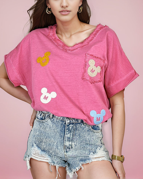 - Ležérní dámské tričko s nášivkami na krátkém rukávu. Ideální základ pro mnoho každodenních looků! POZNÁMKA: Přesnost měření (+/-) 1 cm. Rozměry měřeny naplocho.
