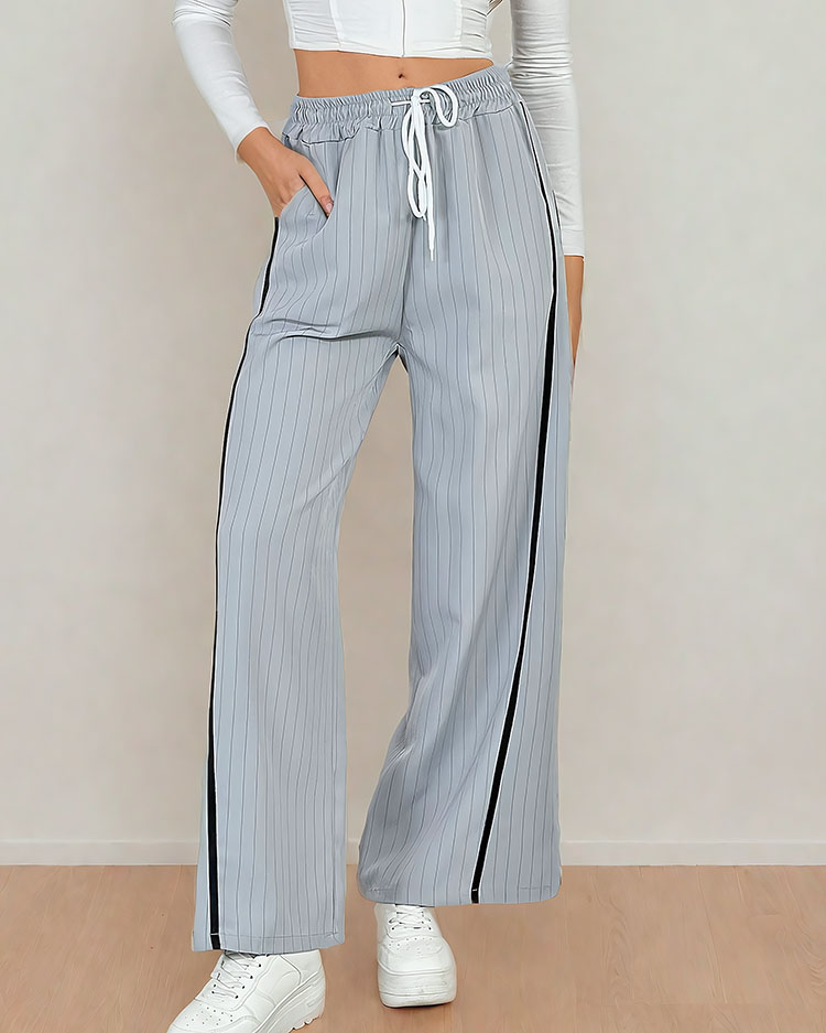 Royalfashion Dámské pruhované látkové kalhoty s proužky