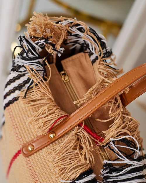 - Velká dámská taška, vyrobená z tkané látky. Model má 1 přihrádku a má zapínání na zip. Ideální na každý den nebo na pláž!