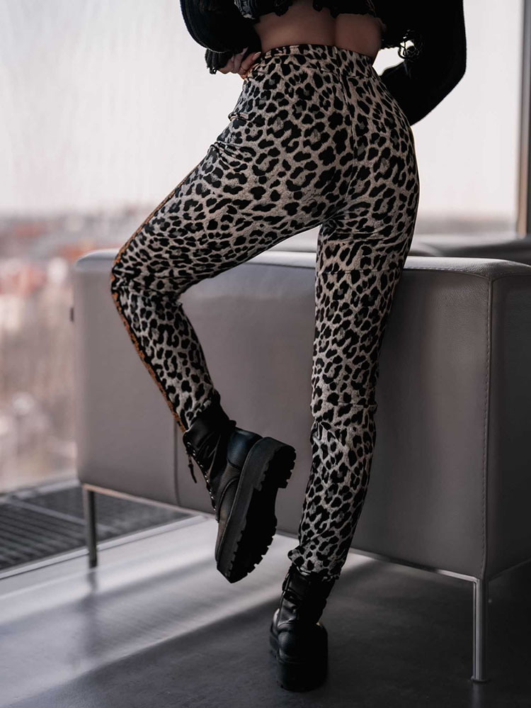 - Stylové legíny ze strečového materiálu. Široký elastický pas zajišťuje pohodlí při nošení. Celé zdobené zvířecím potiskem a zirkony. Ideální pro vytváření stylových outfitů!