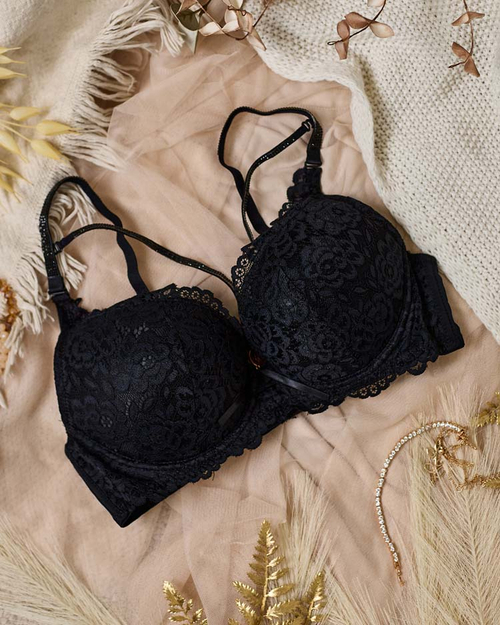 - Výjimečná dámská vyztužená podprsenka. Jemné úpravy s jemnou krajkou jí dodávají na eleganci. Výrobek se vzadu zapíná na háčky. Ramínka jsou odepínací a nastavitelná. Model má ozdobná ramínka se zirkony.