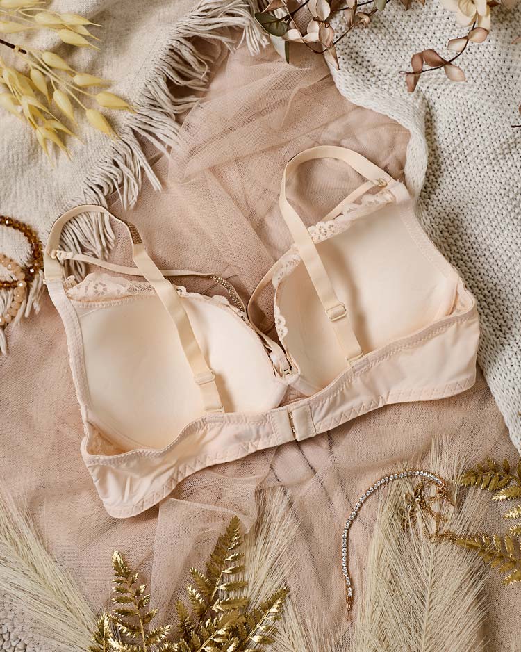 - Výjimečná dámská vyztužená podprsenka. Jemné úpravy s jemnou krajkou jí dodávají na eleganci. Výrobek se vzadu zapíná na háčky. Ramínka jsou odepínací a nastavitelná. Model má ozdobná ramínka se zirkony.