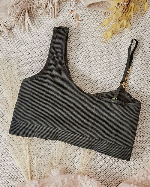 Royalfashion Dámská žebrovaná podprsenka s ozdobným ramínkem
