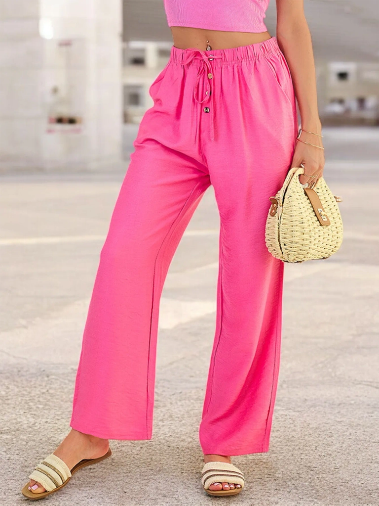 - Fenomenální široké kalhoty z lehké látky, model má v pase gumu a nohavice. Hit letošní sezony! UPOZORNĚNÍ: Přesnost měření (+/-) 1 cm.