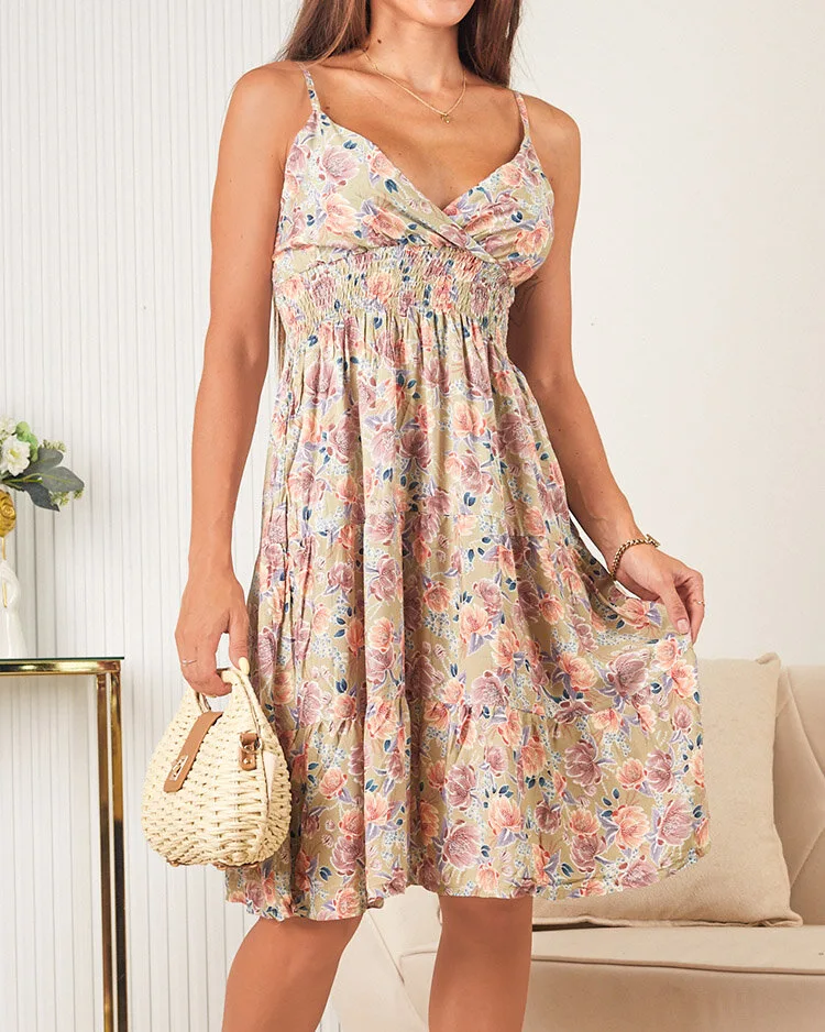 - Dámské šaty s délkou ke kolenům, ramínky a výstřihem do V. Model má ozdobný květinový vzor a pružnou gumu na šířku zad. Must have této sezony! UPOZORNĚNÍ: Přesnost měření (+/-) 1 cm. Rozměry měřeny naplocho.