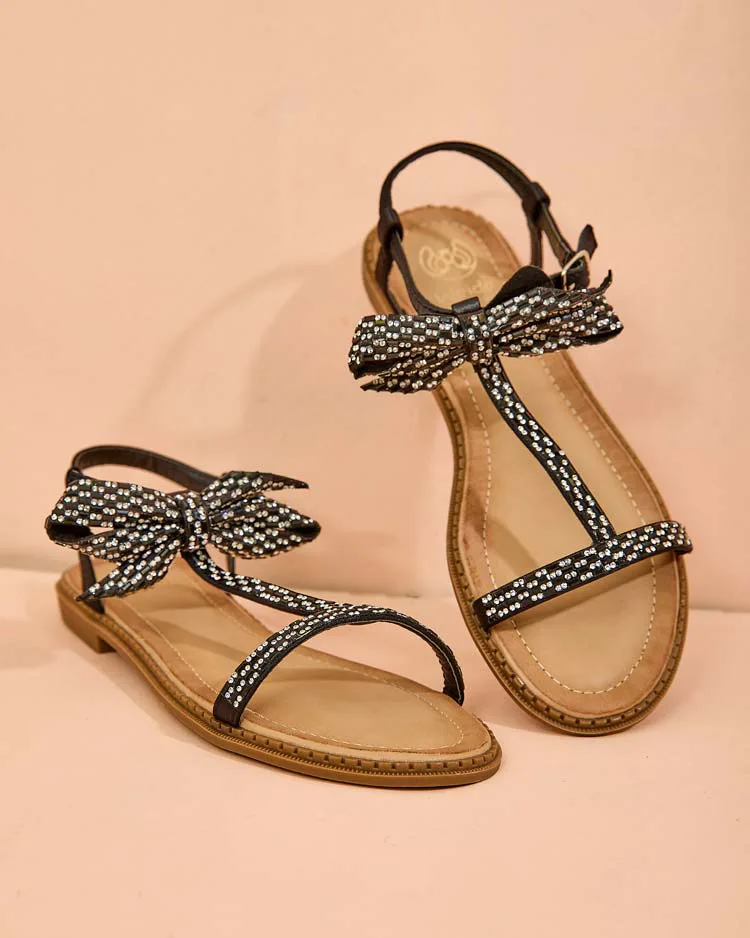 - Módní dámské ploché sandály vyrobené výhradně z ekologické kůže. Zapínají se na přezku, svršek zdobí decentní mašlička, která jim dodává jemnost. Ideální na letní procházky a výjimečné příležitosti!