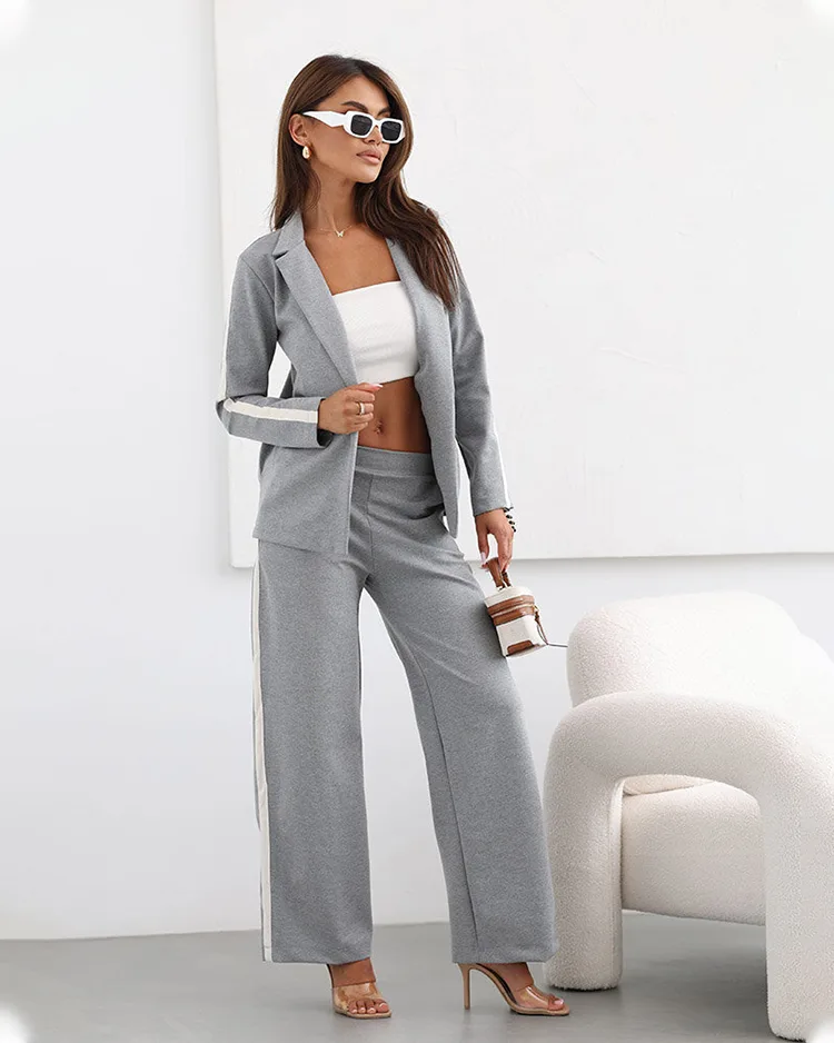 - Originální dámský komplet z příjemného látkového materiálu. Mikina s dlouhým rukávem bez kapuce, zapínání na zip. Široké kalhoty s pružným pasem a 2 kapsami. Celý oděv zdobí lampas. Elegance a styl v jednom!