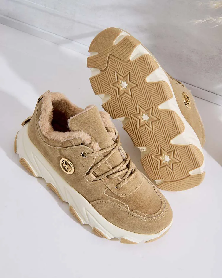 - Dámské zateplené sportovní tenisky na silnější podrážce. Šněrovací svršek z ekologické semišové kůže. Uvnitř měkký kožíšek. Super doplněk k vašim zimním ležérním outfitům!