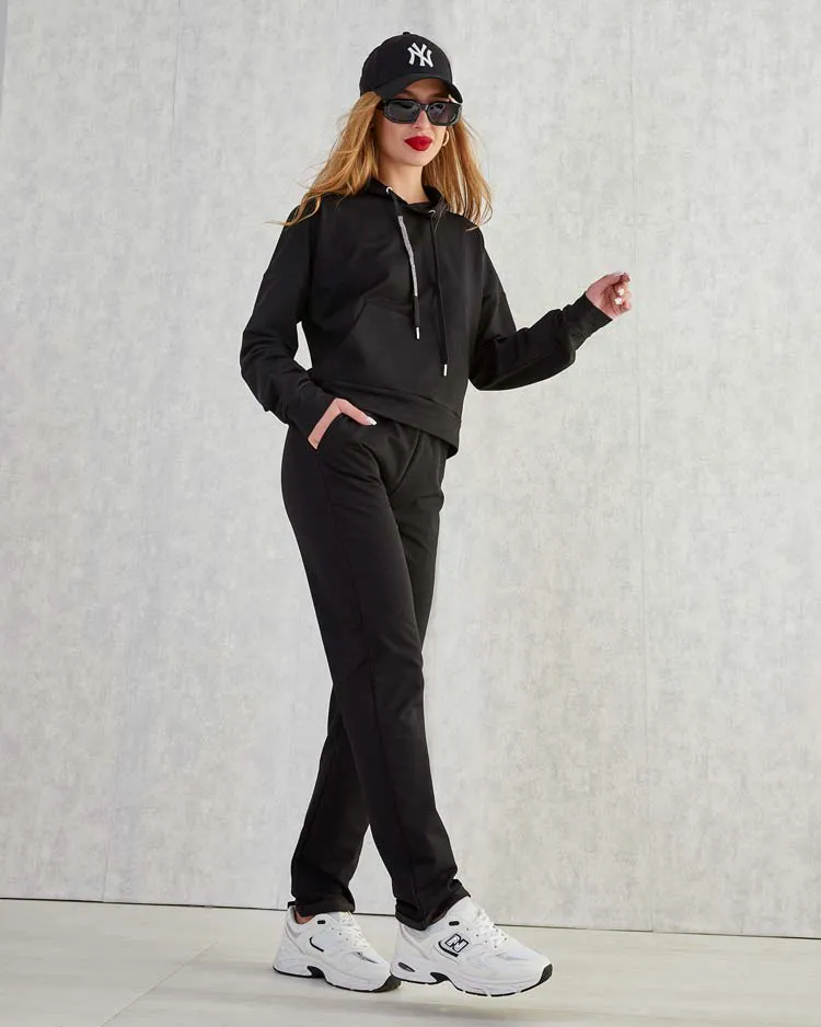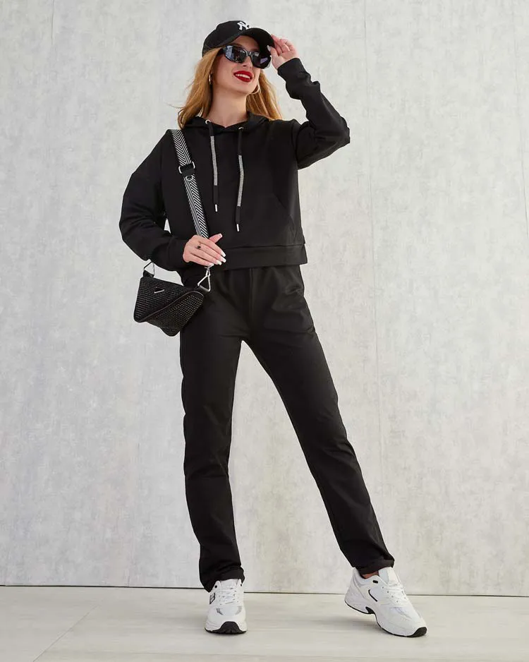 • Pohodlná dámská mikinová souprava - skládá se z klokaní mikiny s dlouhým rukávem a kapucí. Kalhoty s pružným pasem a nohavicemi a se 2 kapsami. Celá souprava je zdobená zirkony. Musíte mít pro každý den! POZNÁMKA: Přesnost měření (+/-) 1 cm.