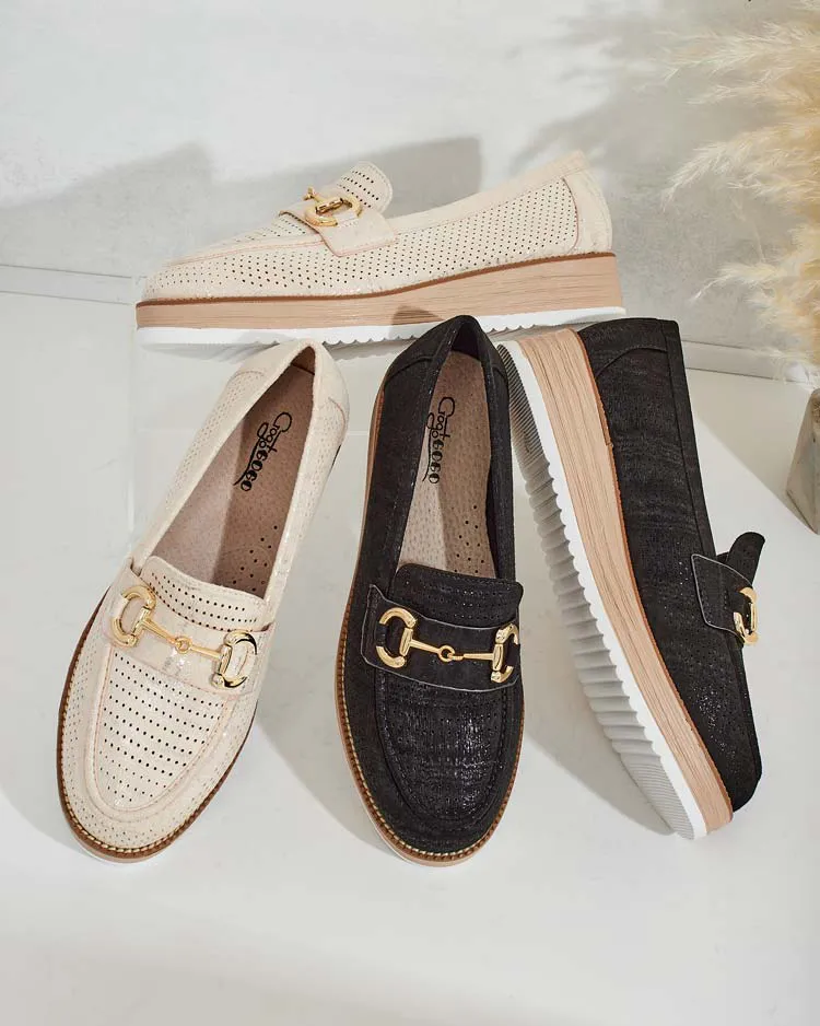 - Nádherné ažurové dámské mokasíny na pevné podrážce. Model v ležérním stylu a je vyrobený z ekologické semišové kůže s lesklou nití, stélka je z přírodní kůže. Obuv s decentním zdobením na svršku. Ideální k podzimním outfitům!