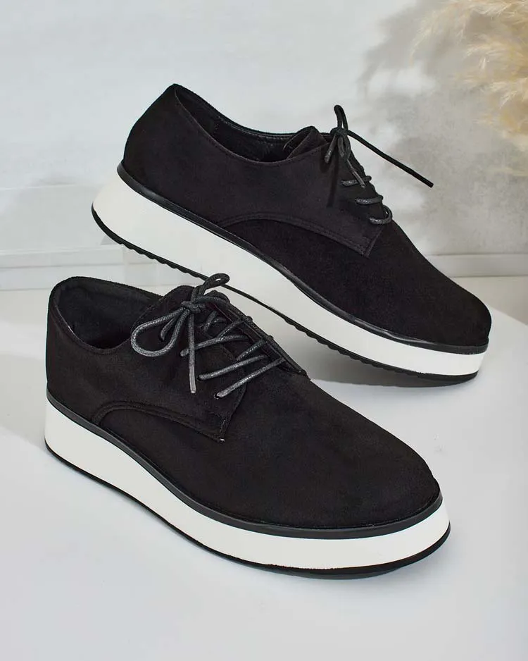 - Dámské šněrovací polobotky na silnější podrážce. Šněrovací svršek je vyroben z matné ekokůže, stélka je z ekokůže. Ideální základ pro každodenní outfity!