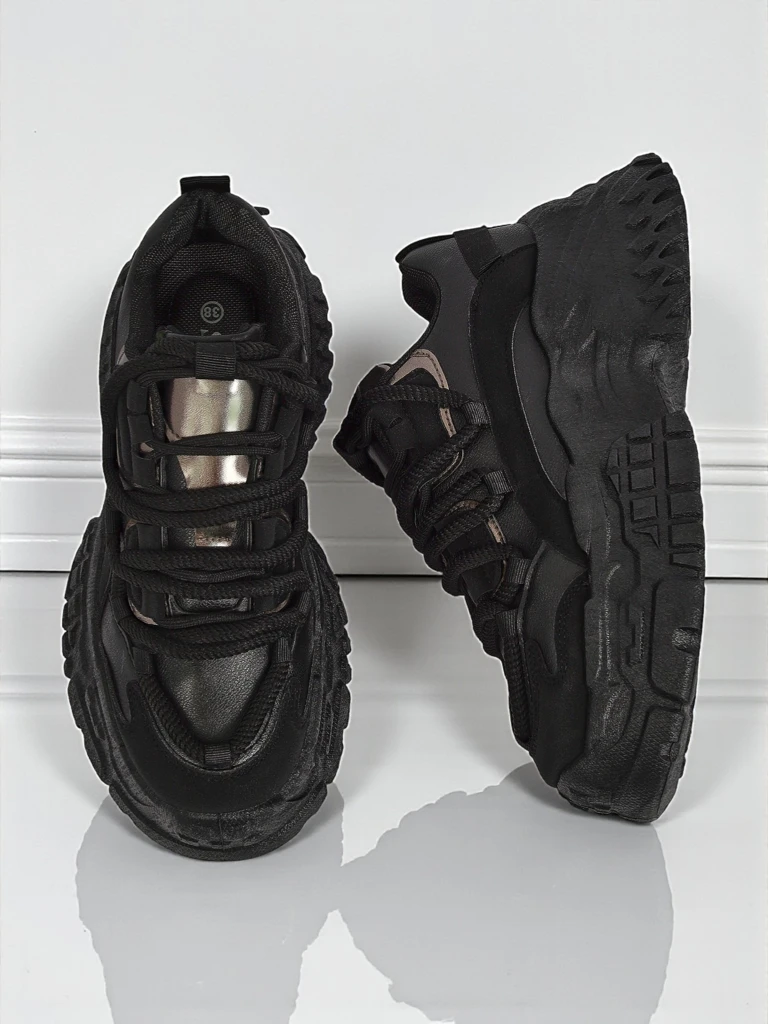 Aurelia Nero – Dámské Sneakers Chunky z Ekologické Kůže Černá 6,5 cm