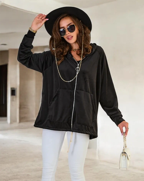 • Klasická dámská mikina a'la velur na zip. Model má kapuci, dvě kapsy a švy ve spodní části a na rukávech. Ideální pro každou ženu! POZNÁMKA: Přesnost měření (+/-) 1 cm.