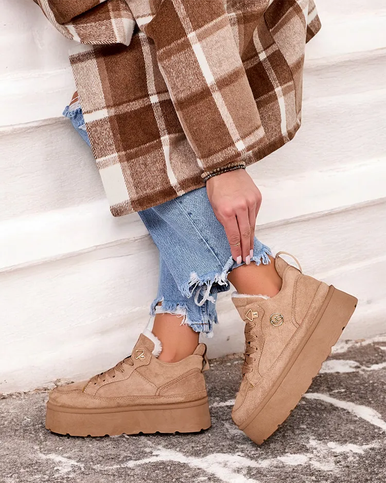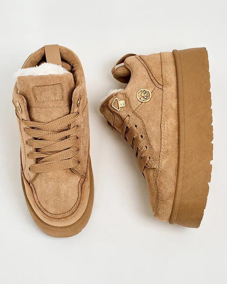 - Dámské sportovní tenisky na platformě. Šněrovací svršek, vyrobený z ekologické kůže. Vnitřní část plně zateplená kožešinou. Ideální ke sportovním outfitům!