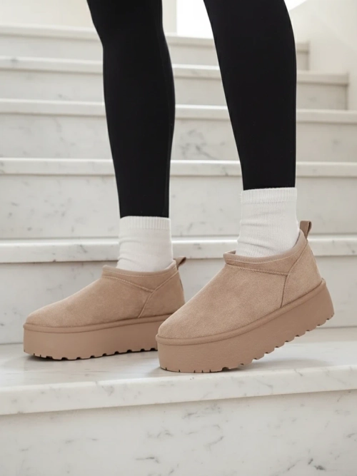 • Skvělé dámské zimní boty na platformě. Svršek je vyroben z ekologické semišové kůže, uprostřed je zateplený kožíškem. Ideální základ pro zimní období!