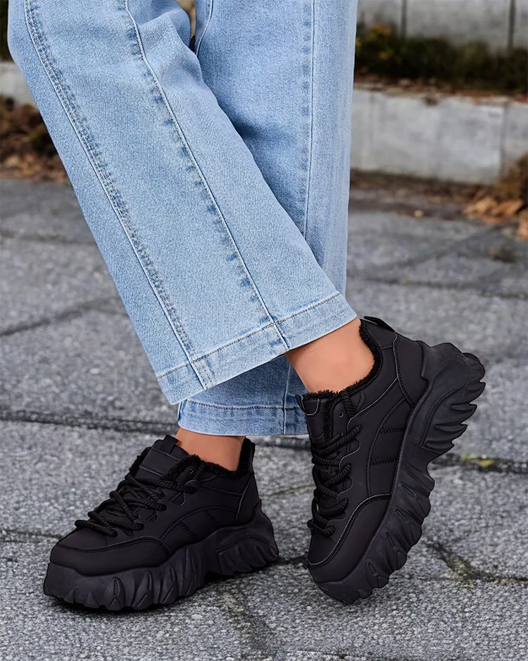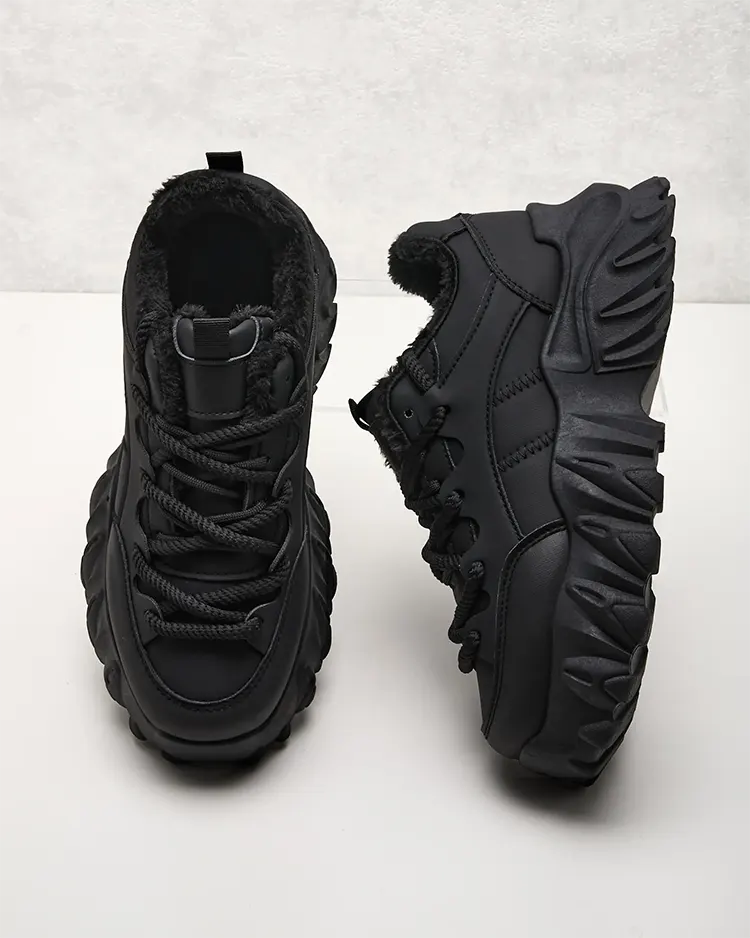 - Dámská zateplená sportovní obuv typu tenisky na silnější podrážce. Šněrovací svršek z matné ekologické kůže. Uvnitř měkký kožíšek. Super doplněk k zimním ležérním outfitům!