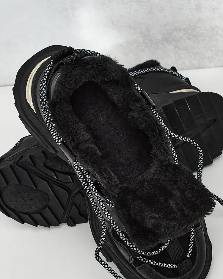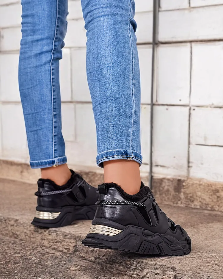 - Dámské sportovní tenisky na silnější podrážce. Šněrovací svršek, vyrobený z ekologické kůže. Vnitřní část plně zateplená kožešinou. Ideální ke sportovním outfitům!