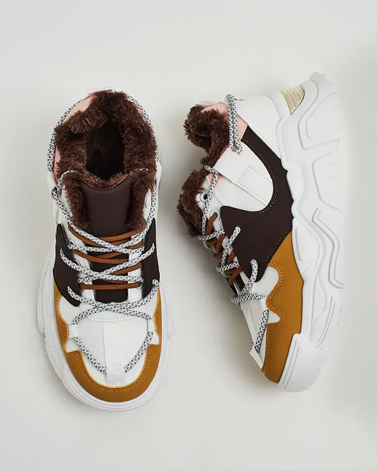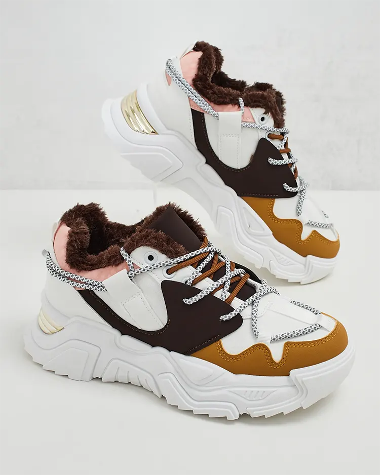 - Dámské sportovní tenisky na silnější podrážce. Svršek se šněrováním, vyrobený z ekologické kůže. Vnitřní část plně zateplená kožešinou. Ideální ke sportovním outfitům!