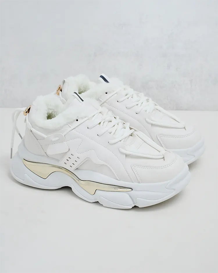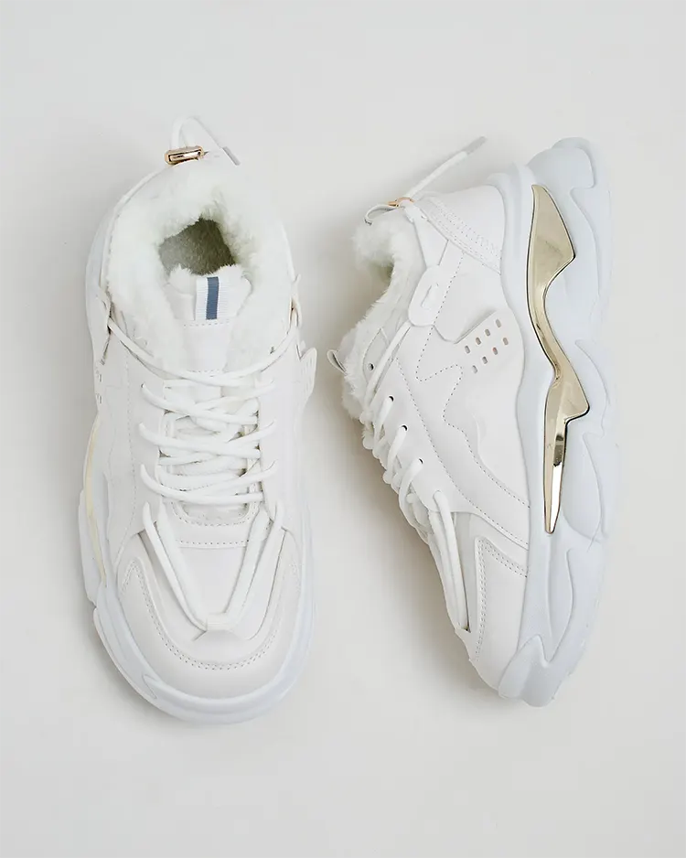 - Dámské sportovní tenisky na silnější podrážce. Šněrovací svršek, vyrobený z ekologické kůže. Vnitřek plně zateplený kožešinou. Ideální ke sportovním outfitům!