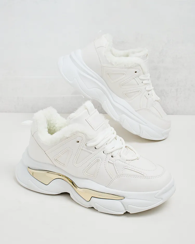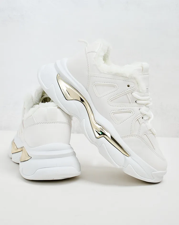 - Dámské zateplené sportovní tenisky na silnější podrážce. Šněrovací svršek z ekologické kůže. Uvnitř měkký kožíšek. Super doplněk k vašim zimním ležérním outfitům!