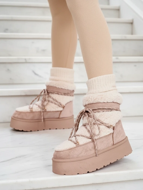 - Dámské sněhule se svrškem z kombinace ekokůže a materiálu a' la ovčí kůže. Uvnitř podšité kožešinou, nazouvací a šněrovací obuv. Ideální na zimu!