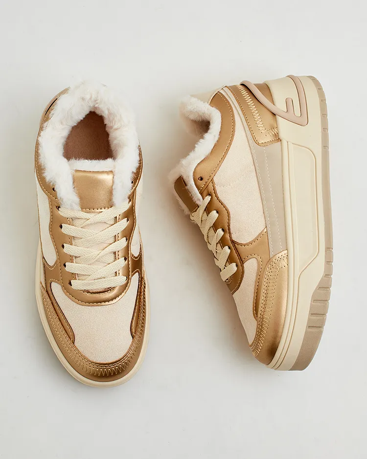 - Dámské zateplené sportovní tenisky na silnější podrážce. Šněrovací svršek z ekokůže a ekokůže. Uvnitř měkký kožíšek. Super doplněk k vašim zimním ležérním outfitům!