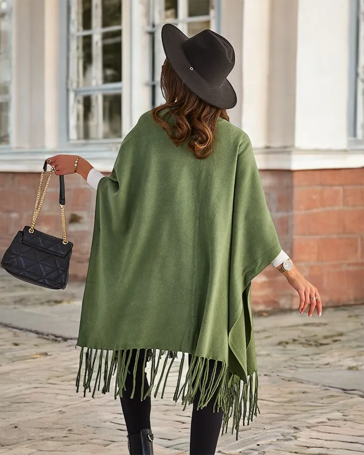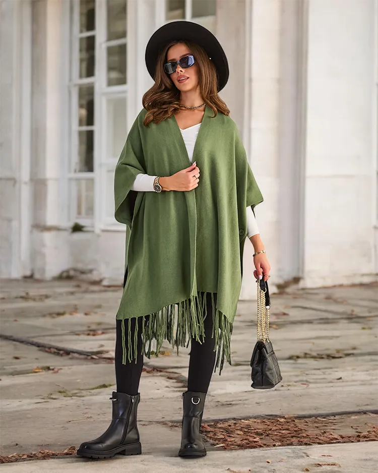 - Elegantní dámské pončo s ozdobnými střapci. Měkký materiál, teplo a styl v jednom. Perfektní pro každou stylizaci. K dispozici v různých barvách.