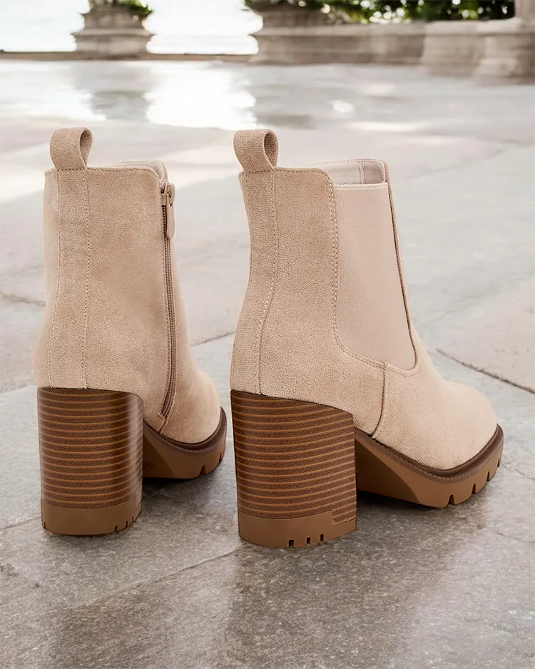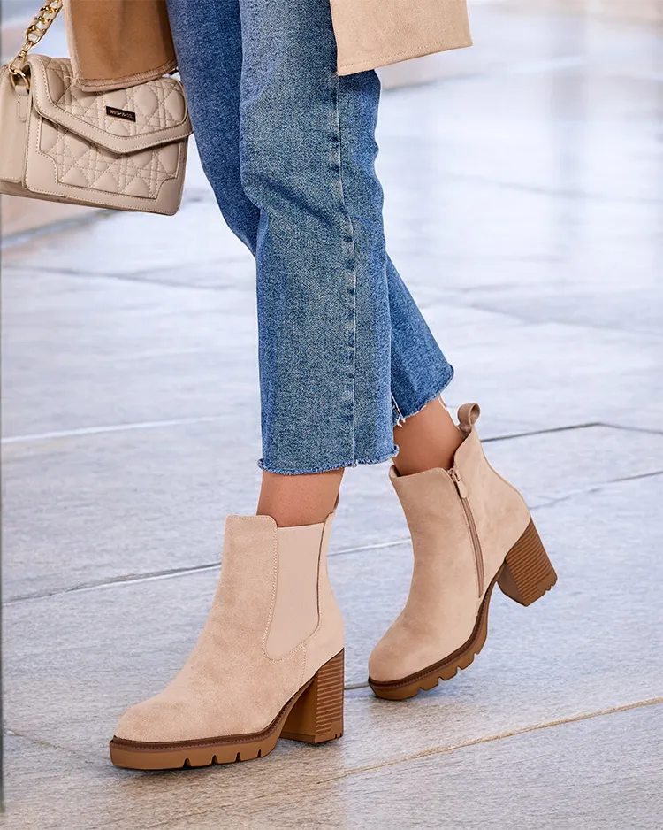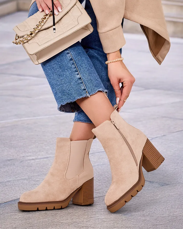 • Boty na jehle - styl a pohodlí v jednom. Nazouvací model s kulatou špičkou. Obuv vyrobená ze semišové ekologické kůže. Stélka má jemný kožíšek. Ideální k podzimním outfitům!
