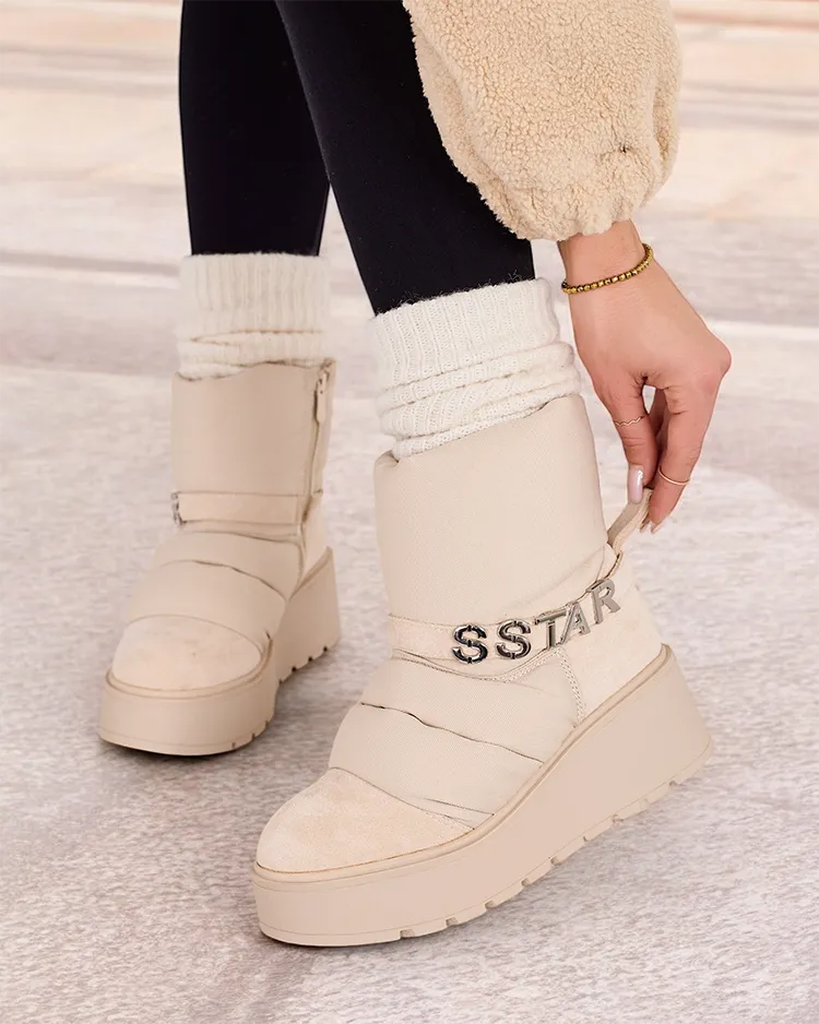 - Dámské sněhule se svrškem z kombinace semišové ekokůže a textilního materiálu. Příjemný kožíšek uvnitř, nazouvací obuv se zapínáním na zip. Ideální na zimu!