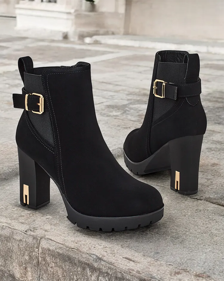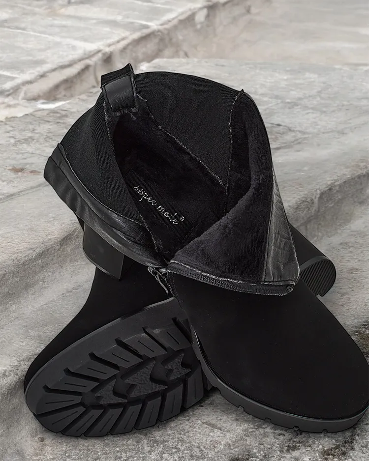 - Kotníkové boty na sloupku - styl a pohodlí v jednom. Model s zapínáním na zip, s kulatou špičkou. Boty vyrobeny z ekologické kůže. Uvnitř podšité měkkým kožichem. Skvělé pro podzimní outfity!