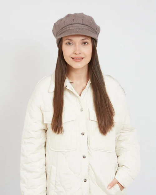 • Krásný dámský baret s kšiltem vyrobený z příjemného materiálu s jemným třpytivým nitěm. Vyložený jemným kožíškem. Klasický model, který skvěle doplní podzimní stylizace!