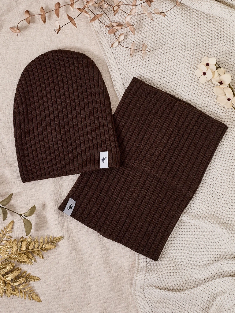 - Univerzálna zimná sada s čepicou a šálom na krk. Sada je vyrobená z odrbaného pleteného materiálu. Ideálna základňa pre chladné zimné dni!
