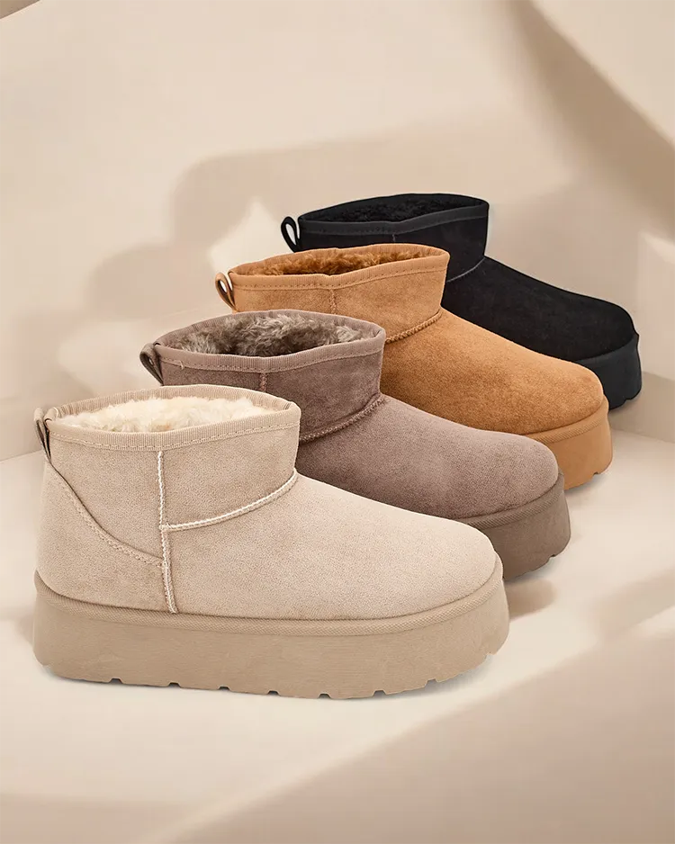 • Skvělé ženské zimní sněhové boty na platformě. Vrchní část je vyrobena z ekologické semišové kůže, vyplněná kožešinou. Perfektní základ pro zimu!