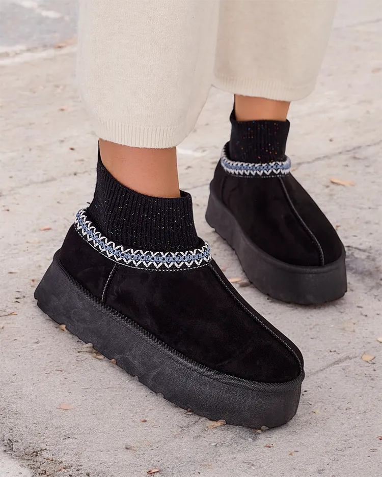 - Skvělé zimní platformní sněhové boty pro ženy. Vrchní část je vyrobena z ekologického semišového kůže, uvnitř je vyložená kožešinou. Perfektní základ pro zimu!
