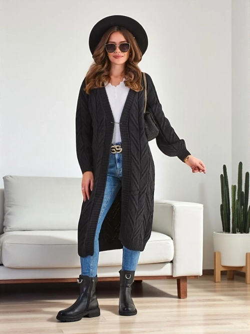 - Krásný pletený kardigan pro ženy, vyrobený z pohodlného pleteného materiálu. Kardigan bez zapínání a kapuce. Nezbytný doplněk do vaší šatníku pro dokončení podzimních stylizací! POZNÁMKA: Přesnost měření (+/-) 1 cm.