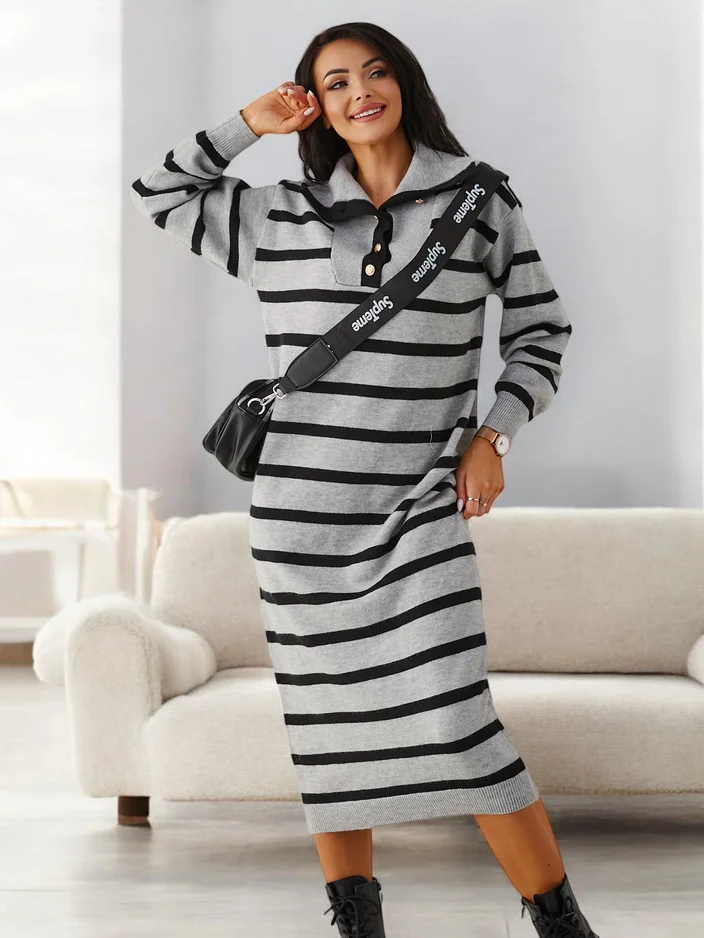 Royalfashion Dlouhý svetříkový šaty pro ženy se proužky