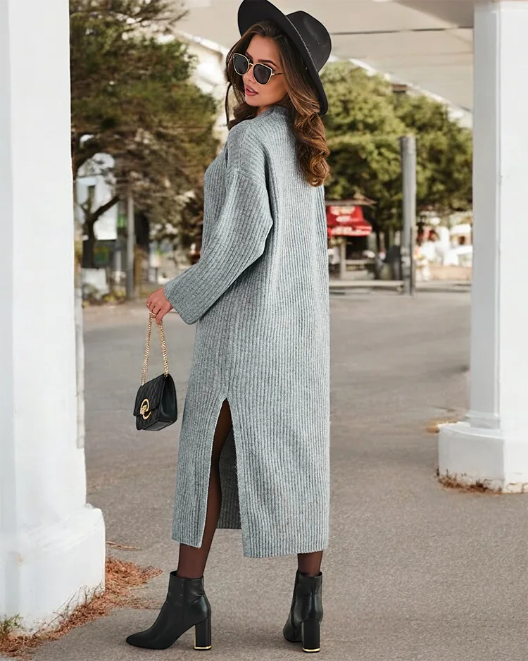 - Středně dlouhé svrchní šaty pro ženy s dlouhými rukávy. Model vyrobený z pletené látky. Musíte mít tento sezónu! POZNÁMKA: Přesnost měření (+/-) 1 cm. Rozměry měřeny plochě.
