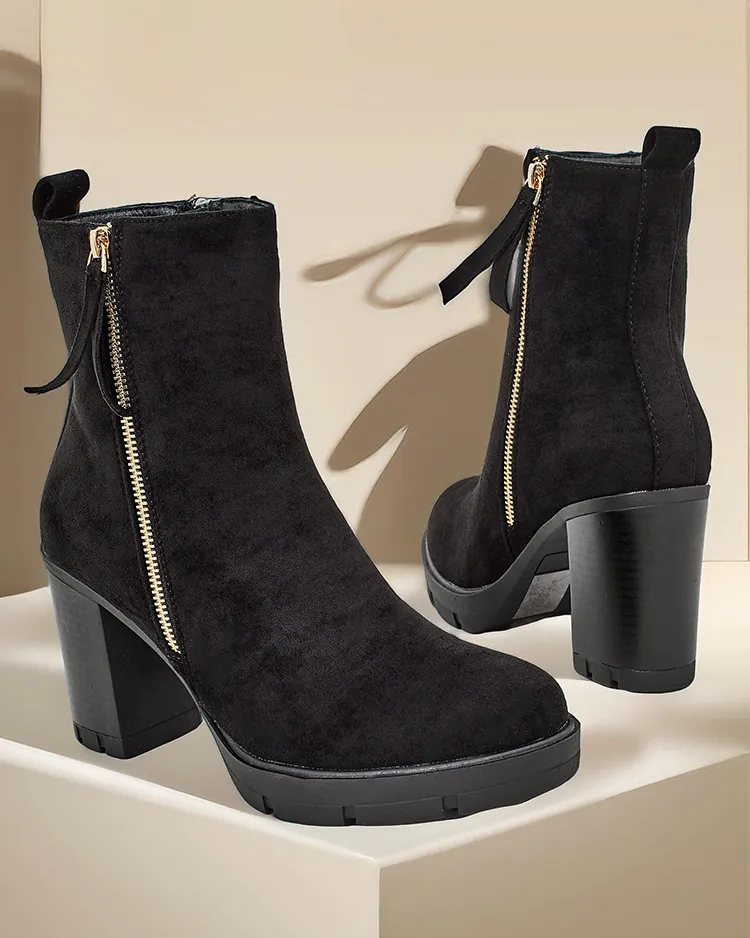 - Stylové dámské kotníkové boty jsou ideálním řešením pro chladnější dny. Hora je upevněna zipem a uvnitř je kožichová podšívka. Model na sloupu s kulatou špičkou. Skvělé doplnění k vašim každodenním outfitům!