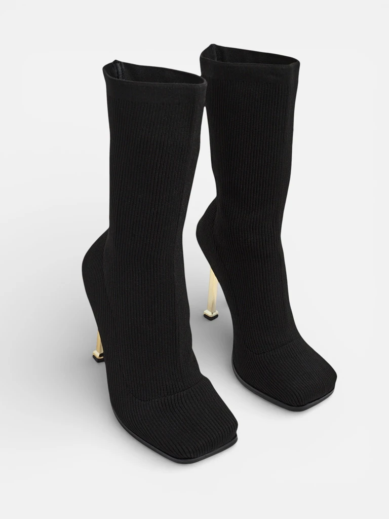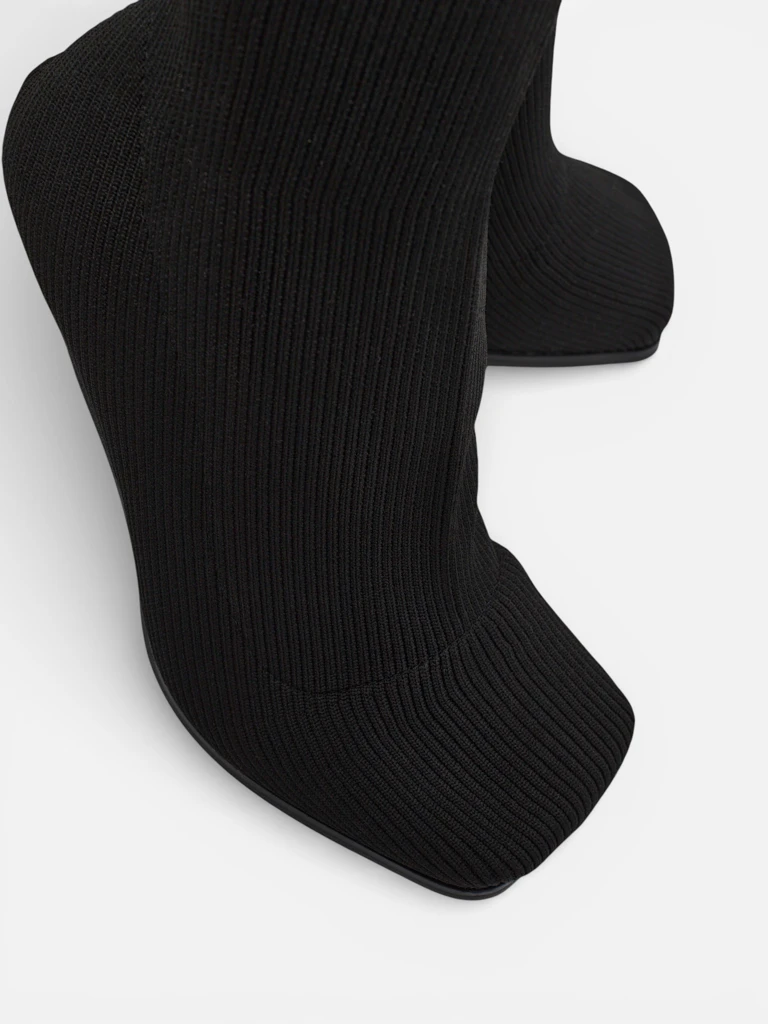 - Elegantní kotníkové boty na štíhlém podpatku vyrobené z elastické látky, slip-on boty. Model má čtvercový špičatý konec. Skvělé boty pro podzimní outfit!