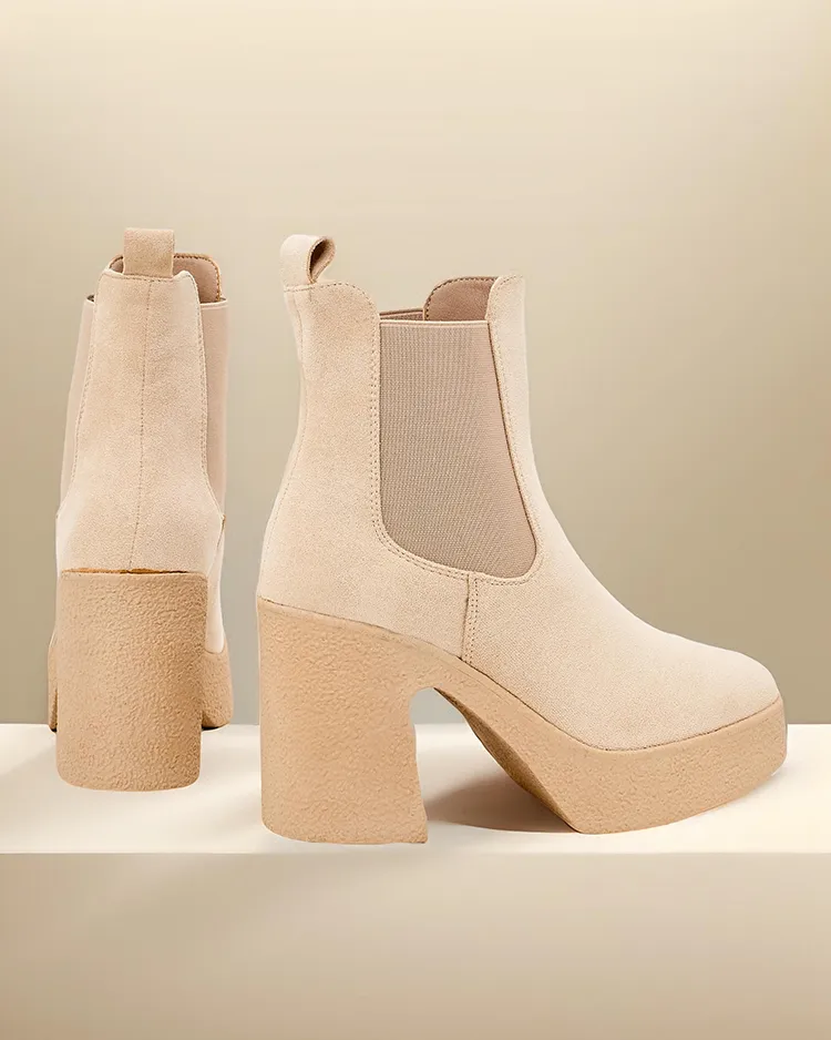 - Unikátní kotníčkové boty na podpatku a platformě - styl a pohodlí v jednom. Model se zasunutím s kulatým nosem. Obuv vyrobena z ekologického semiše. Vystlaná měkkým kožešinovým materiálem uvnitř. Ideální pro podzimní oblečení!