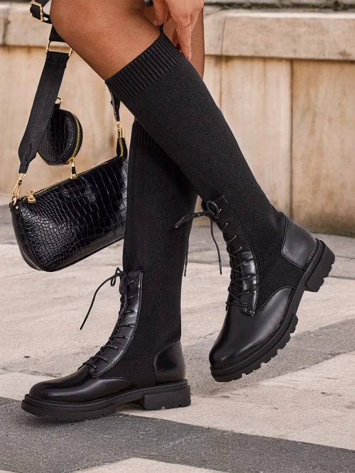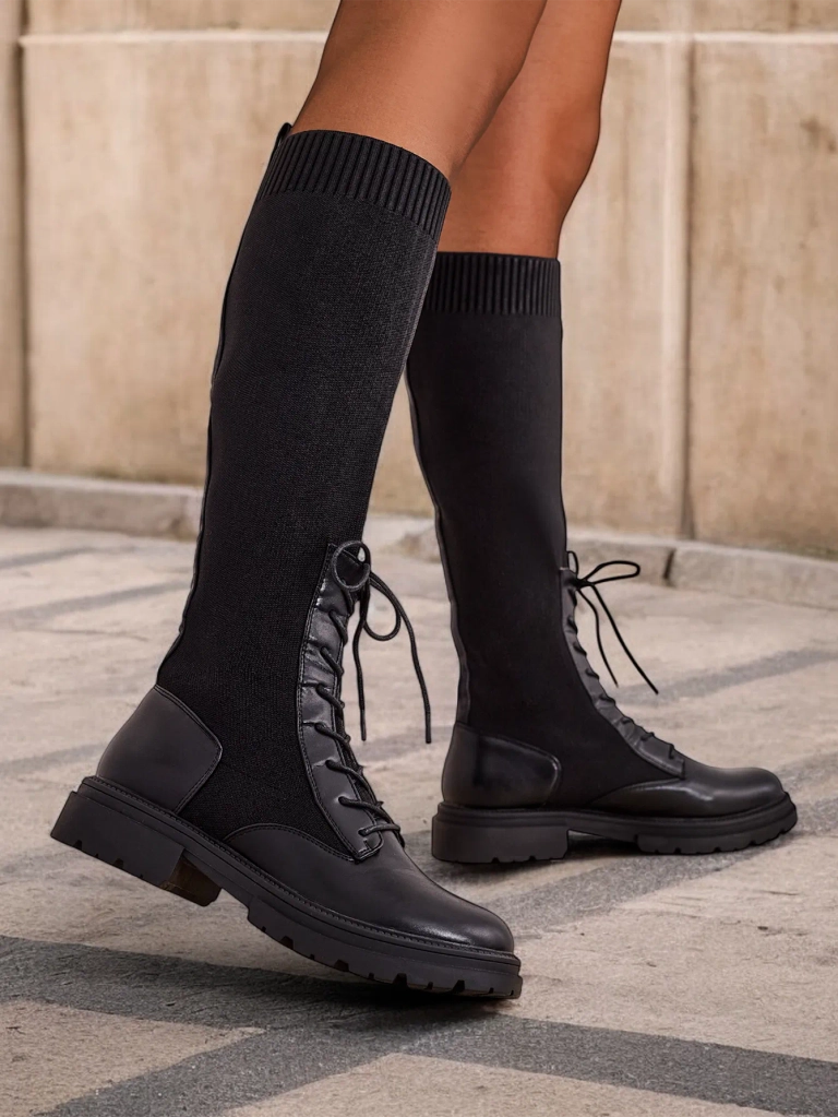 - Stylové dámské boty na tlusté podrážce. Vrchní část je vyrobena z pružné látky, uvnitř je textilní stélka. Model slip-on s dekorativními šněrováním. Perfektní pro každodenní podzimní outfit!